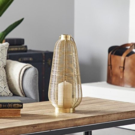 Farol redondo grande de metal dorado Grayson con asa