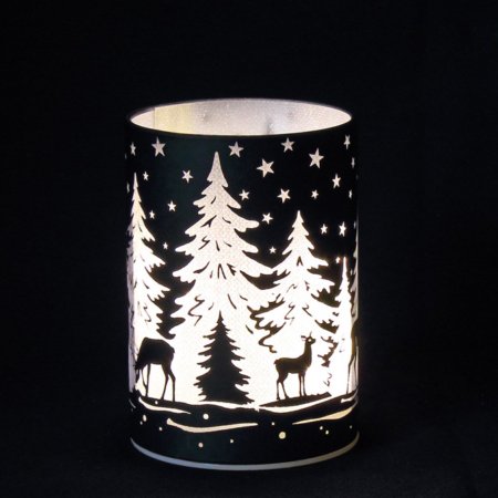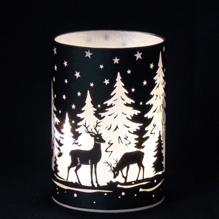 Navidad Portavelas de cristal con motivo de bosque centelleante y luz LED