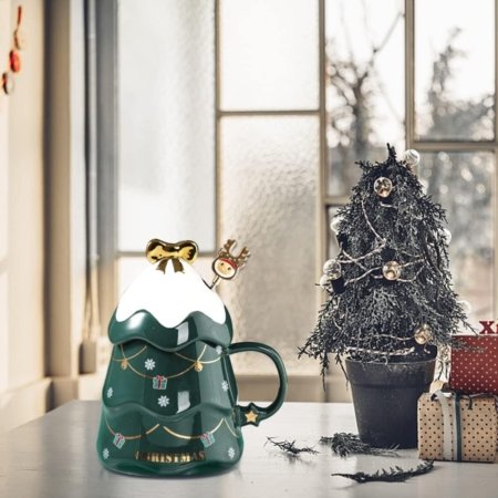 Taza Navidad Arbol Nevado con Tapa y Cuchara