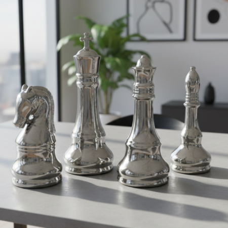 Escultura Set de 3 piezas Ajedrez de Madera y Aluminio