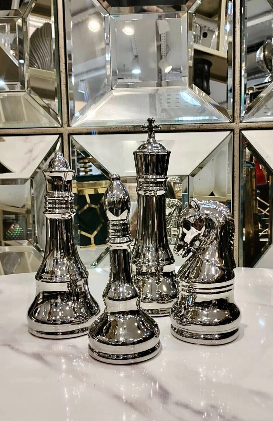4 Piezas de Ajedrez Escultóricas · Plata