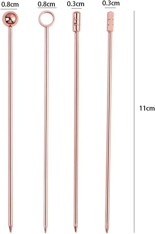 - Características: Los bordes de cada púa de cóctel de acero inoxidable están diseñados para ser lo suficientemente afilados para una perforación rápida de alimentos. Estos palillos de dientes para bebidas de cóctel son adecuados para todas tus creaciones decorativas.