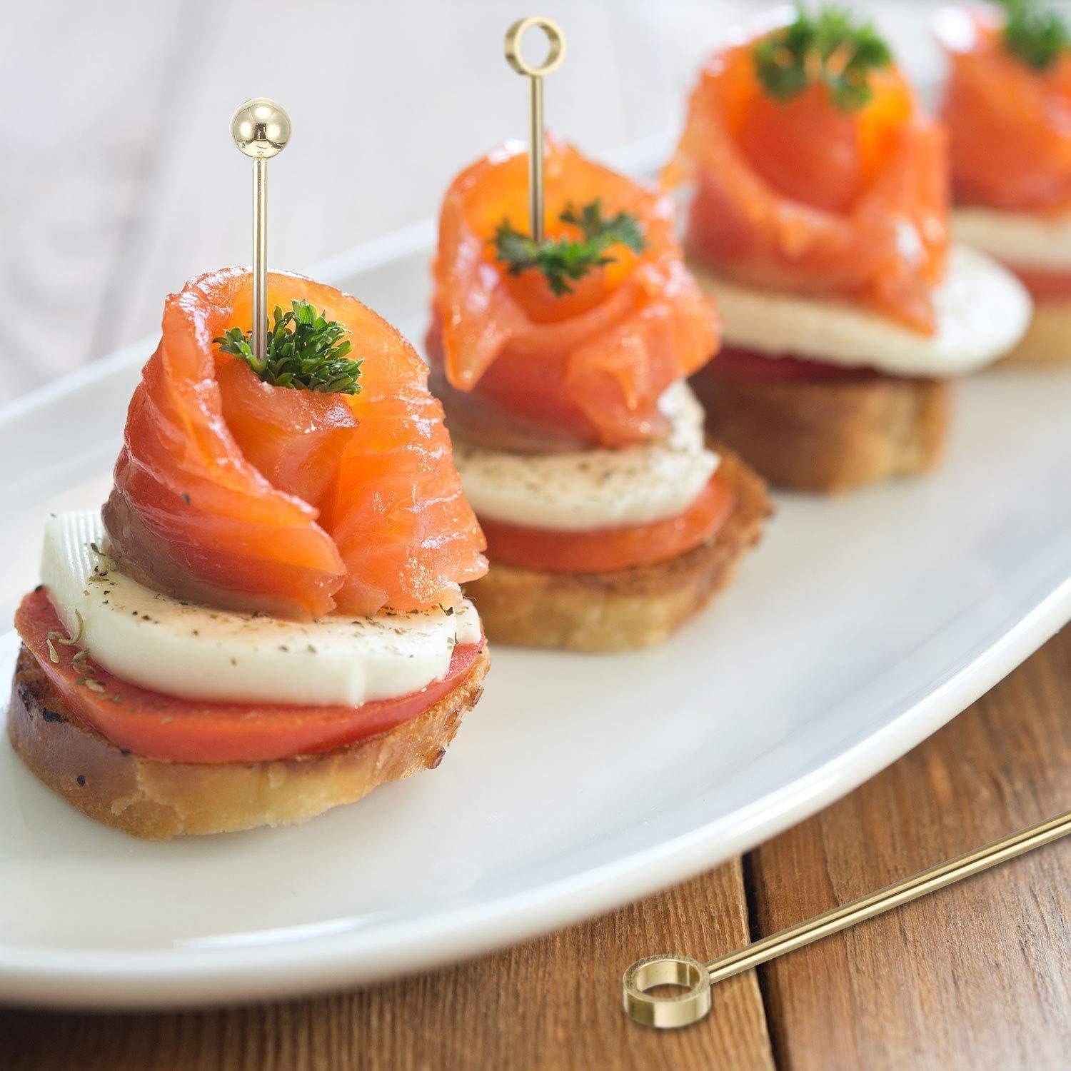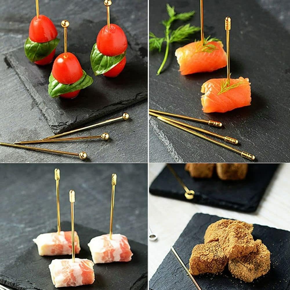 - Multiusos: nuestras púas de cóctel de metal son ideales para decorar cócteles, aperitivos, frutas, barbacoas y cualquier otra comida deliciosa. Ideal para cada fiesta, como bodas, cumpleaños, baby shower, cenas de día festivo o uso diario en el hogar.