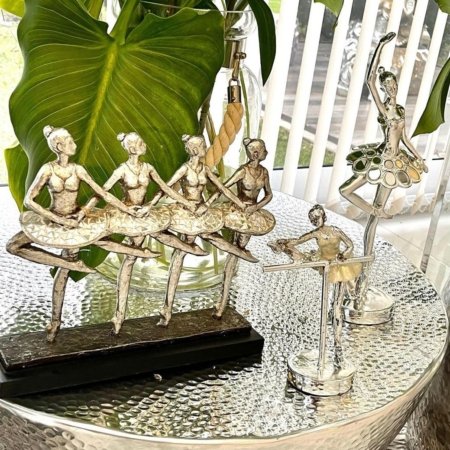 Baila toda la noche con estas brillantes esculturas de bailarina de cerámica maciza de plata completa con intrincados tutús y posiciones de baile perfectas para tu estudio en casa o sala de estar