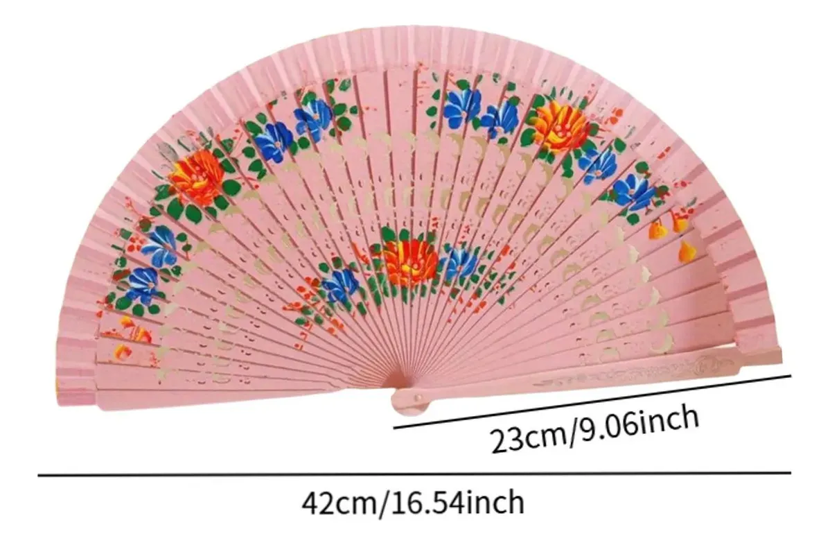 Con un largo de varillas de 23 cm y una apertura máxima de 42 cm, este abanico es fácil de manejar y transportar. Su técnica de apertura permite un uso sencillo, ideal para refrescarse en días calurosos o como accesorio decorativo. La altura de 23 cm lo hace perfecto para llevar en el bolso o en la mano, asegurando que siempre esté a tu alcance.