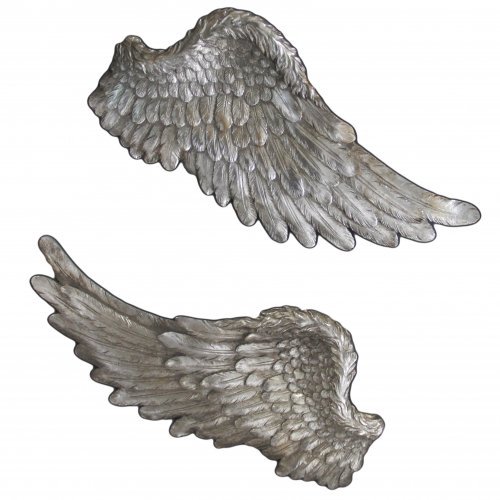 Par de grandes alas de ángel plateadas decorativas para la pared. Decoración del hogar vintage shabby chic