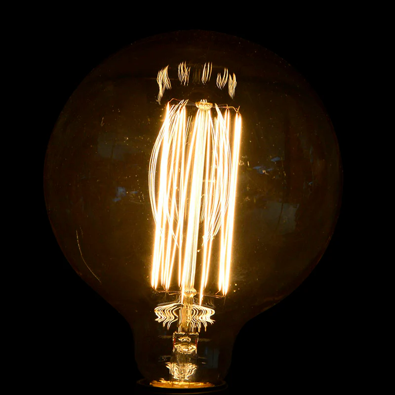 - Esta bombilla incandescente de aire retro, de cristal transparente y con los filamentos visibles es tan bonita que la podrás poner en una lámpara colgante sin necesidad de utilizar pantalla para disfrutar de su encanto, que se ha convertido en tendencia en decoración.Con una potencia de 40 W y un flujo luminoso de 150 lúmenes, aporta una luz ambiental muy cálida, y tanto si colocas una como varias transformarán cualquier espacio, desde la cocina al salón pasando por el dormitorio Sobre el Tamaño LED G200 Bombilla de Filamento – E27 11 vatios