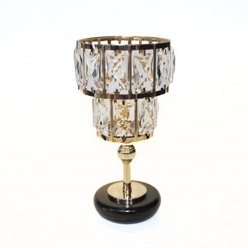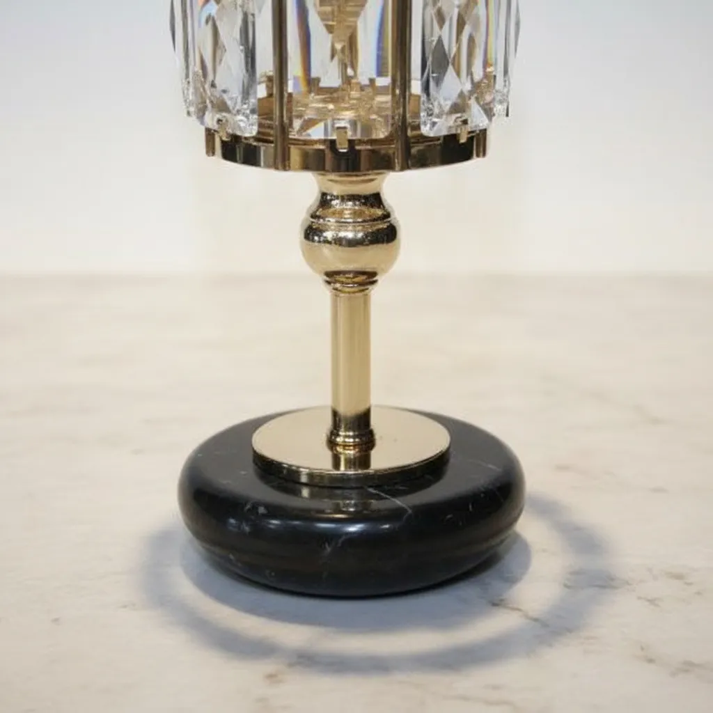 🎨 Materiales: mármol negro, bronce y cristal tallado
