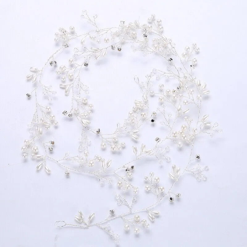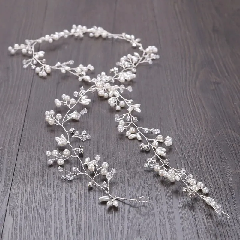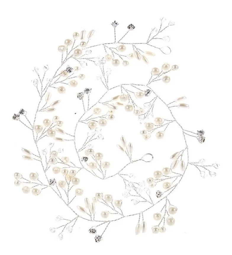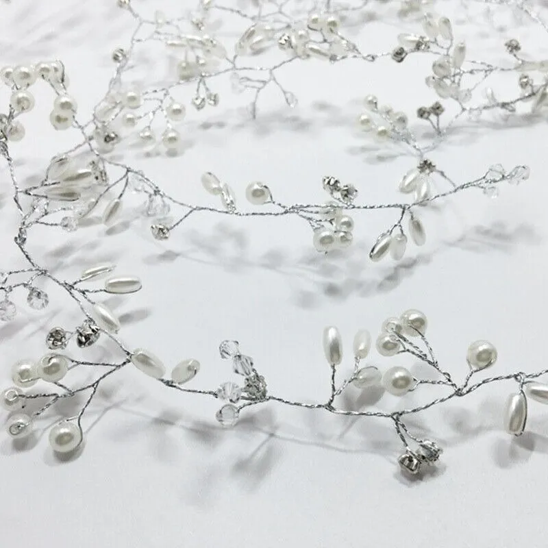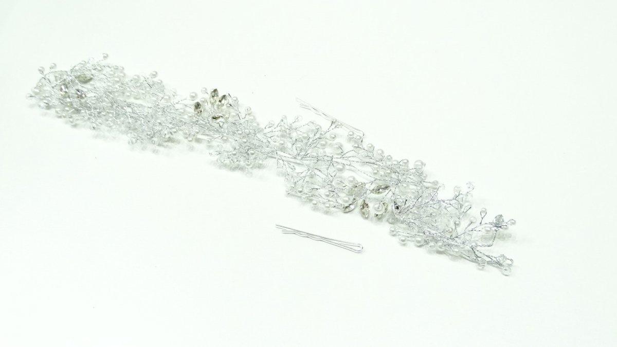 Elegante Tocado Plateado con perlas y piedras - miscellaneousbycaff.com.ar