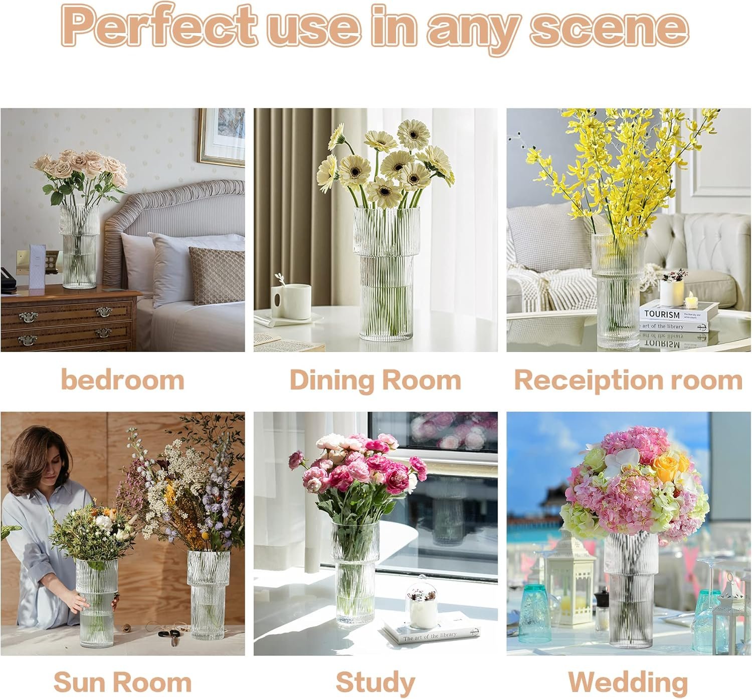 - Forma simple y brillante, combina con una variedad de escenas: este jarrón de vidrio grueso de gran calibre con alta transmitancia tiene una forma simple, brillante y atmosférica, adecuado para una variedad de escenas. Con tus flores brillantes y coloridas favoritas, colócalas en la mesa de café de la sala de estar, junto al sofá, en la mesa, en el dormitorio. Cada lugar agregará un color brillante y cálido al entorno de tu hogar y te dará una sensación fresca de vida decorativa del hogar.
