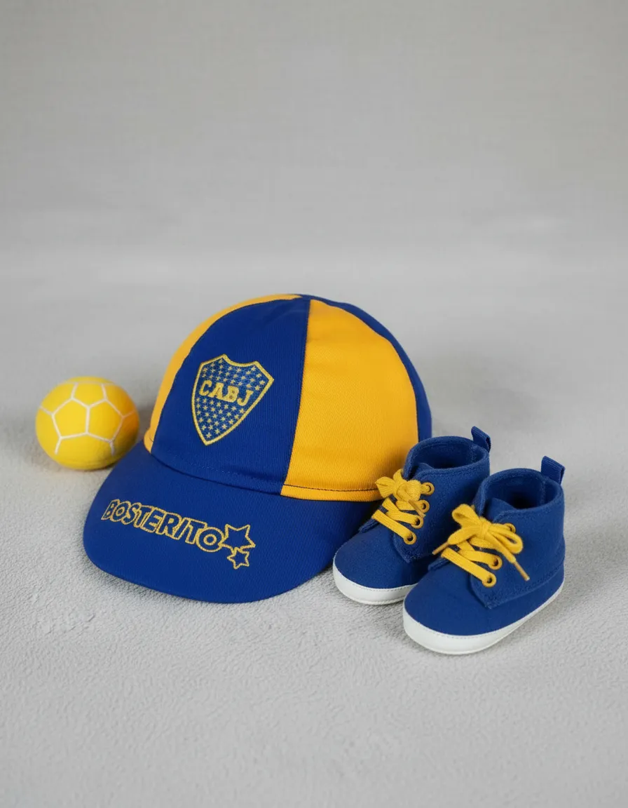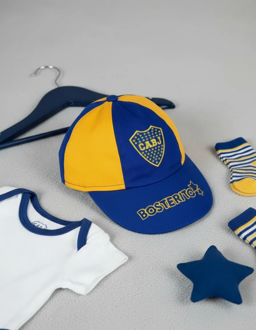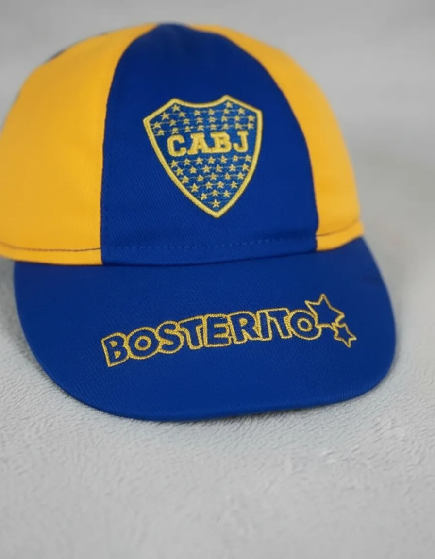 Escudo con estrella bordado en el frente. Leyenda «Boquita» bordada en visera.