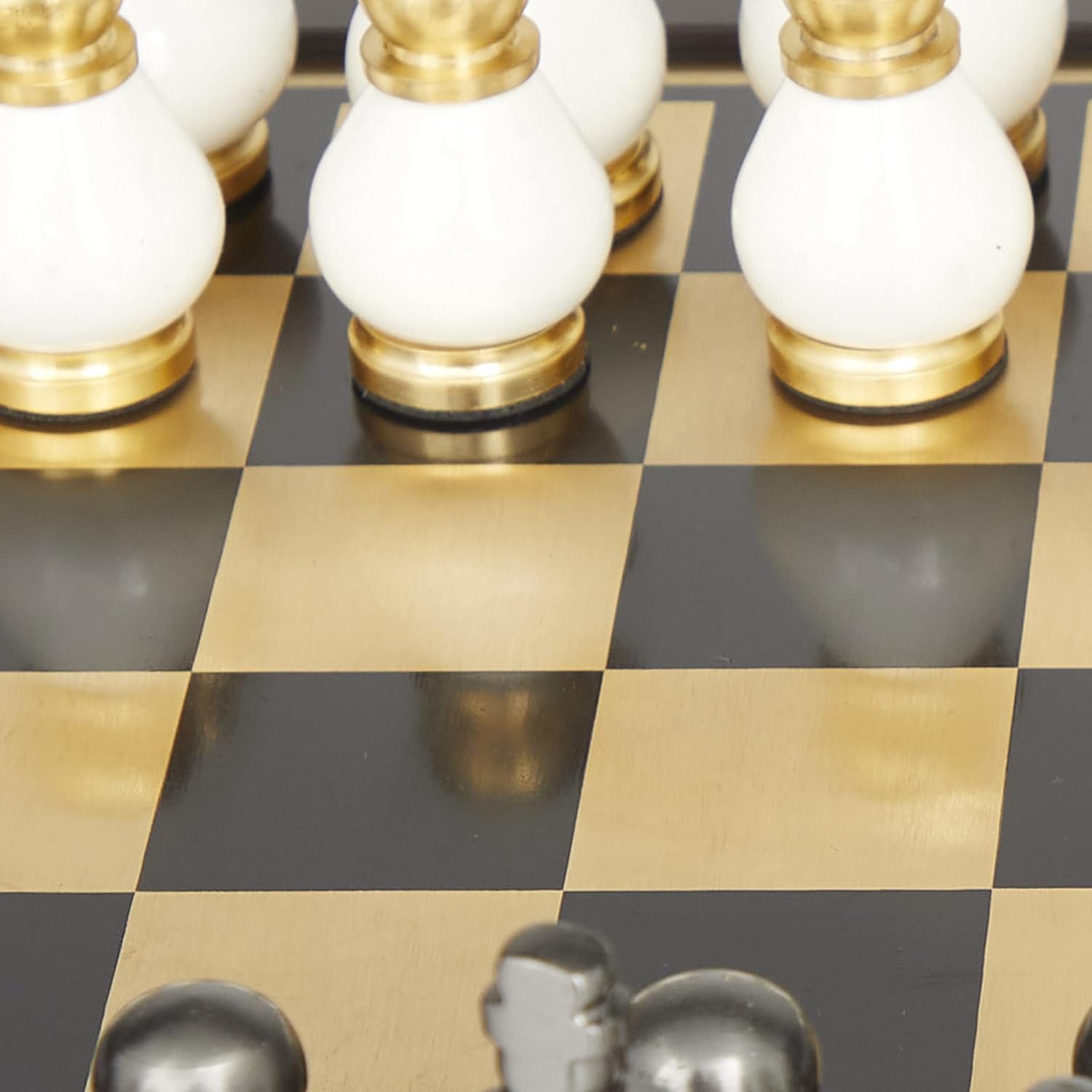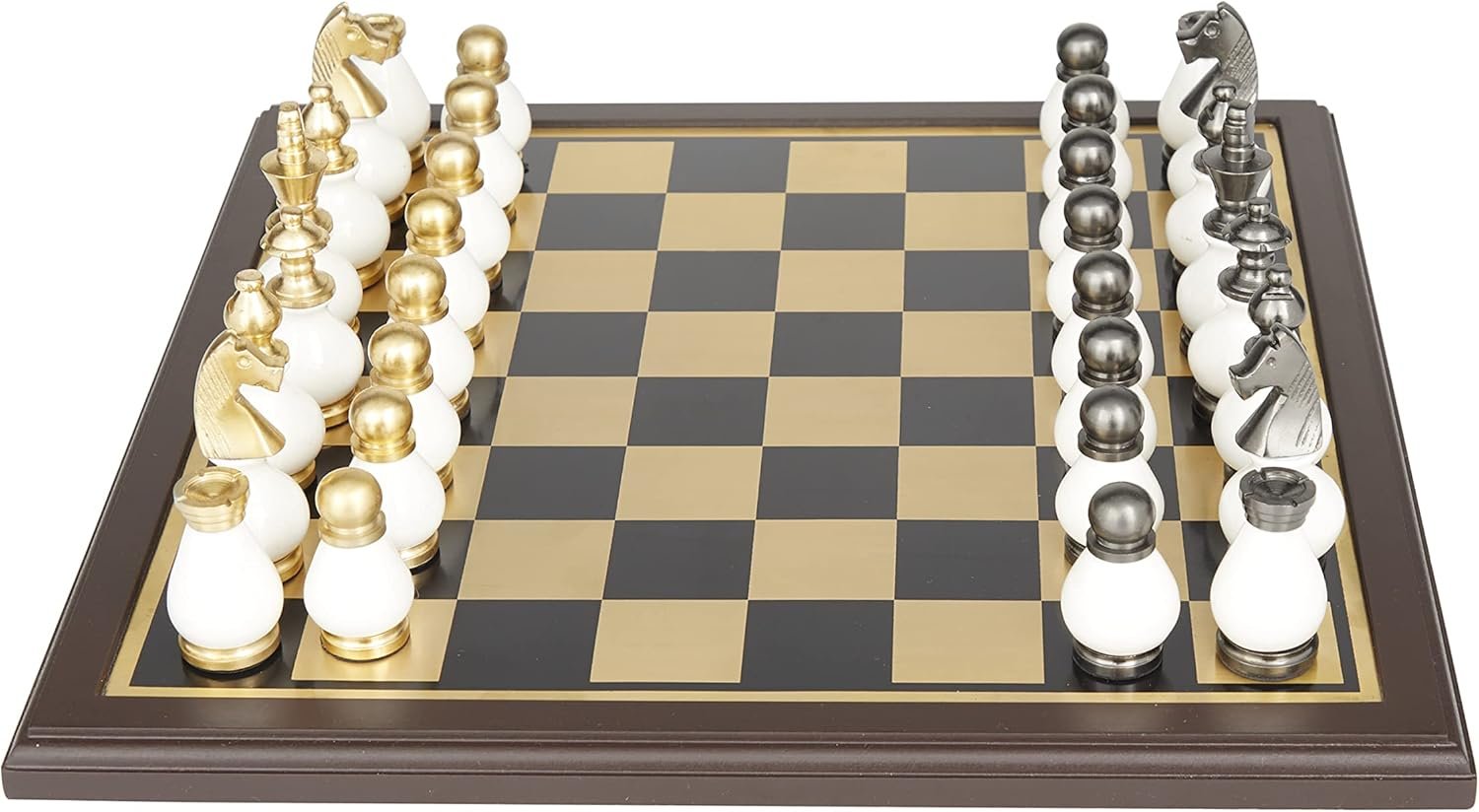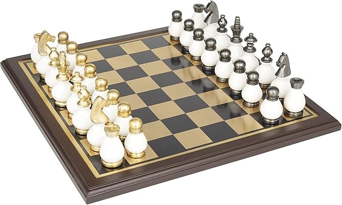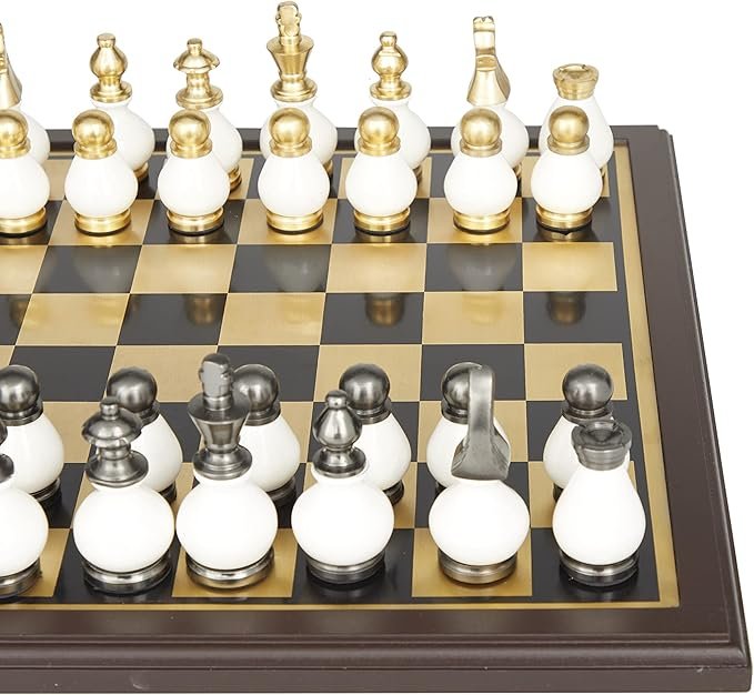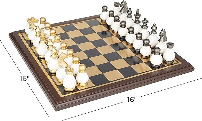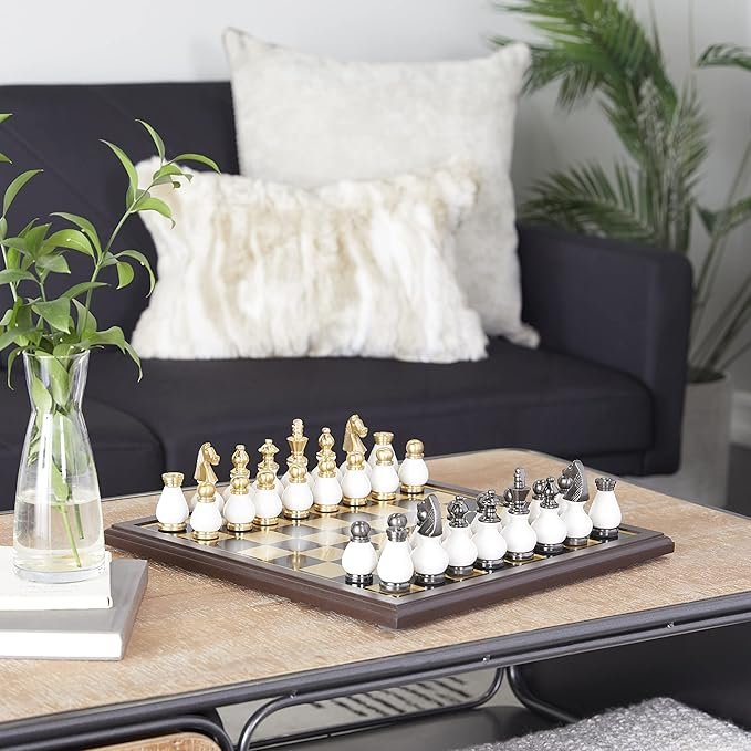 Una mezcla de blanco blanqueado con acabado dorado metálico pulido y plateado añade un aspecto elegante a este juego de mesa de juego para un juego clásico o una impresionante decoración de exhibición