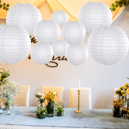 - *** Linterna de papel blanca 50cm ***Esta linterna de papel es blanca y mide 50cm. Tiene soportes de metal. Se puede colgar del techo y se puede utilizar para muchas ocasiones diferentes como bodas, despedidas de soltera, baby showers, decoraciones de fiesta blanca y cumpleaños.*** Planificación de fiestas divertida ***