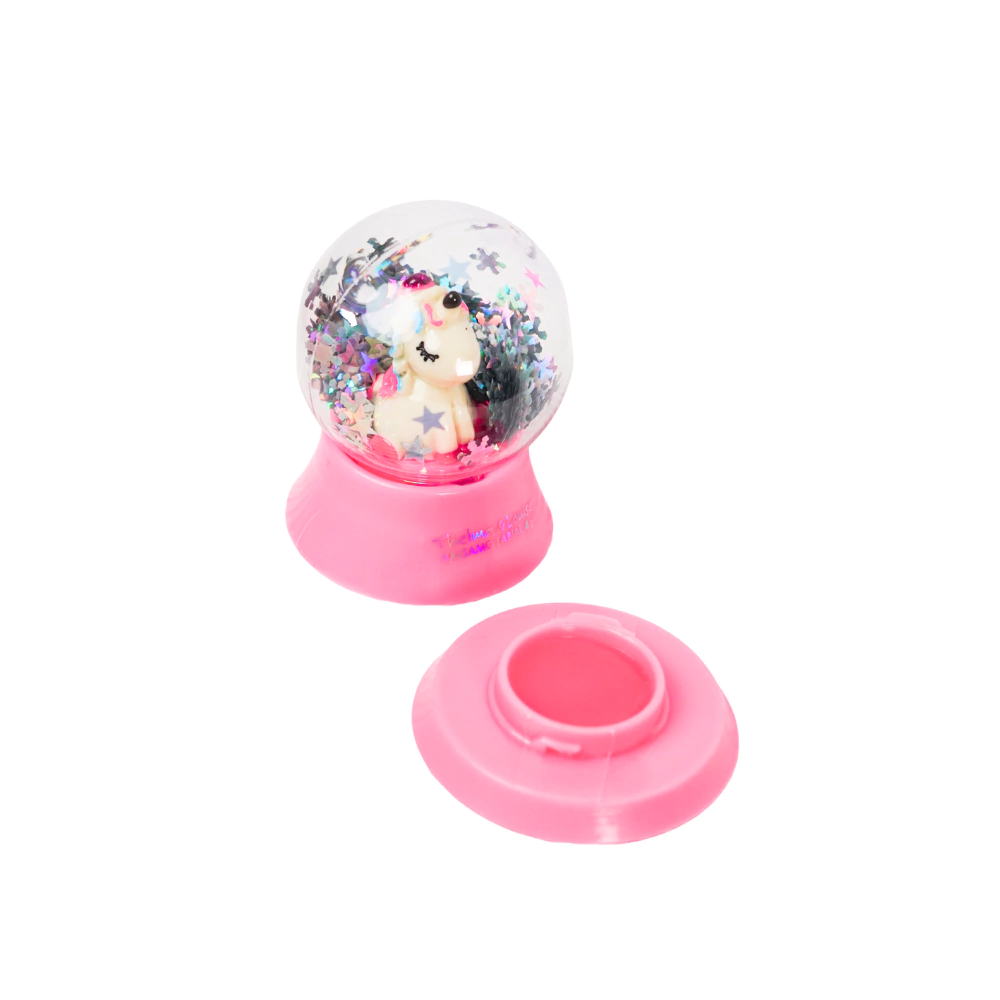 ¡El regalo perfecto para las infancias que aman la magia y el cuidado! Esta snowball con un simpático unicornio y brillos esconde en su interior un lip balm que hará que tus labios estén tan suaves como un arcoíris. Ideal para sorprender y cuidar al mismo tiempo. ¡Brilla, hidrata y divierte en un solo producto! ¿Quién dijo que cuidar los labios no podía ser mágico?