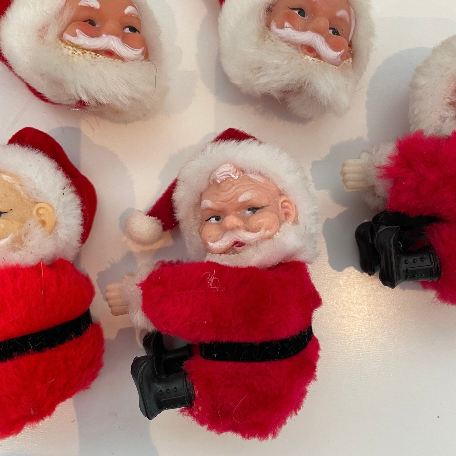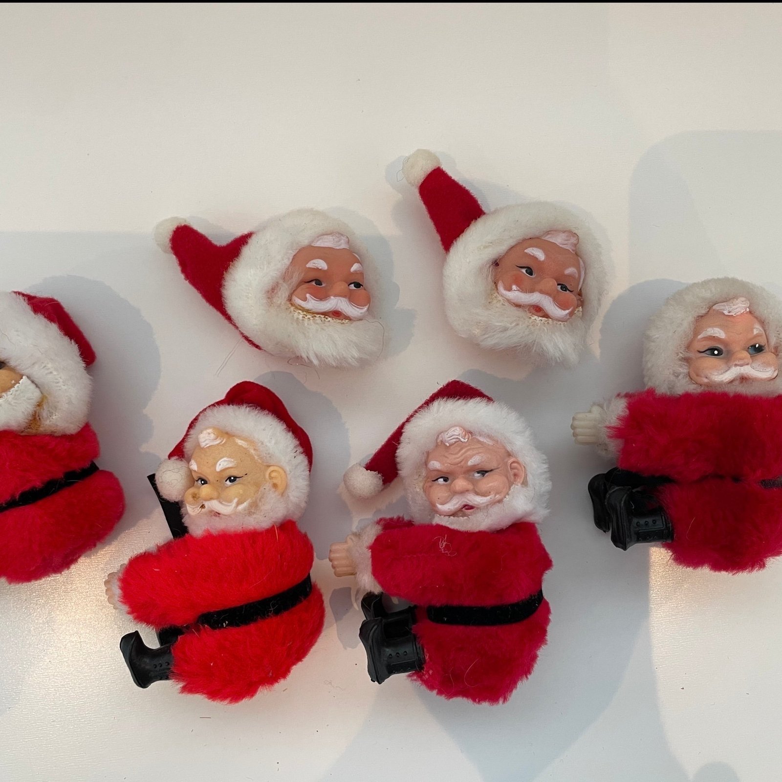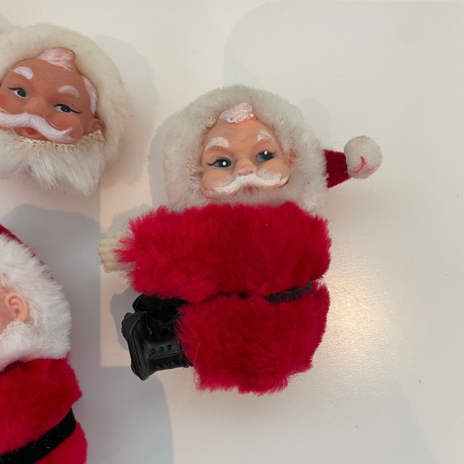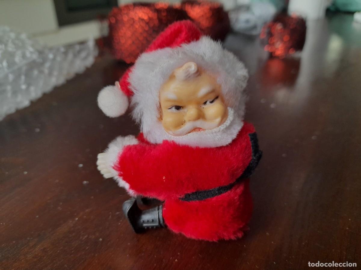 Simpática figura de Papá Noel con brazos y piernas en forma de pinzas invisibles para sujetar sobre cualquier parte; coche, mochila, etc., vestido de terciopelo rojo, medidas 8 cm de largo x 6 cm de ancho y 3,4 cm de grosor, en perfecto estado de conservación