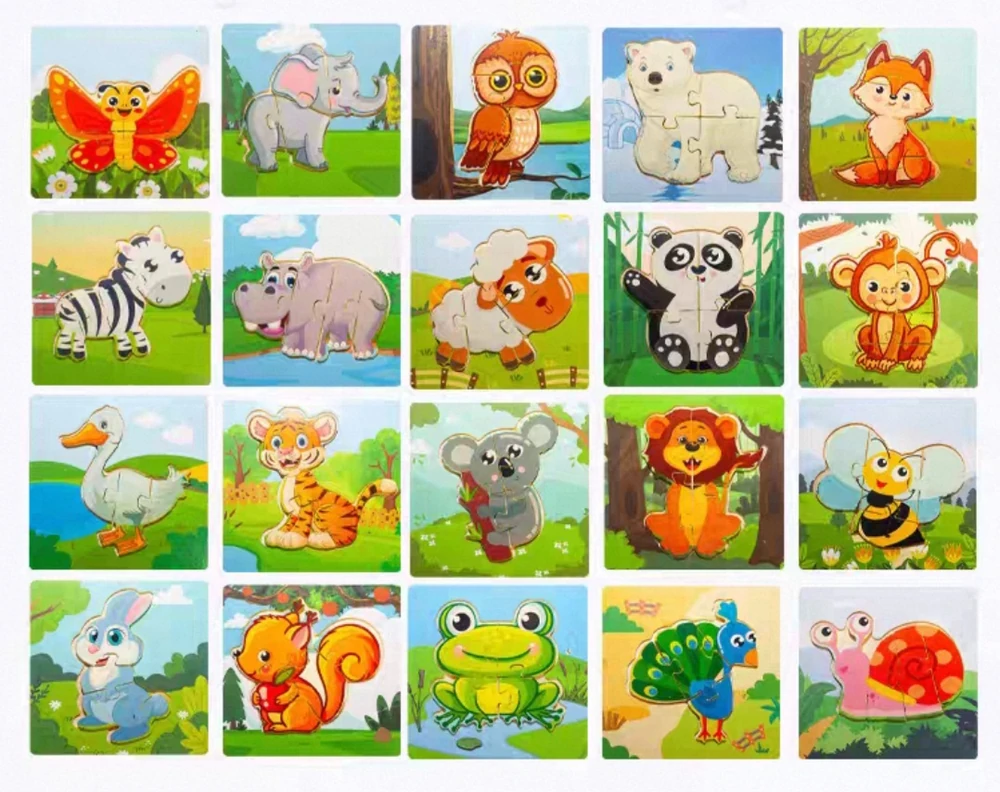 Con 4 piezas por rompecabezas, los niños disfrutan de un desafío adecuado a su etapa de desarrollo, fomentando la confianza y la satisfacción al completar cada figura.