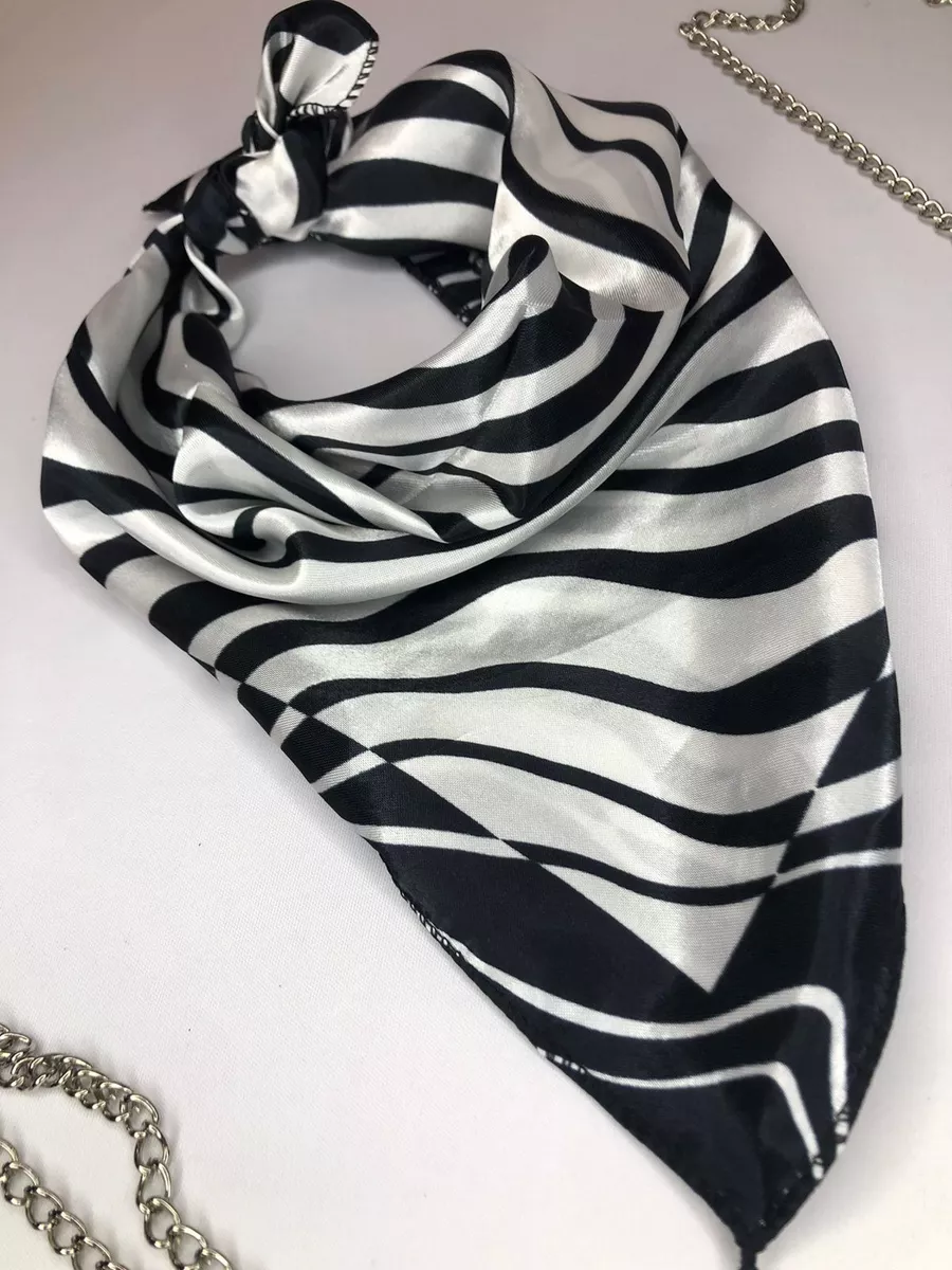 - Estilo: bufanda cuadrada. Patrón: Cebra