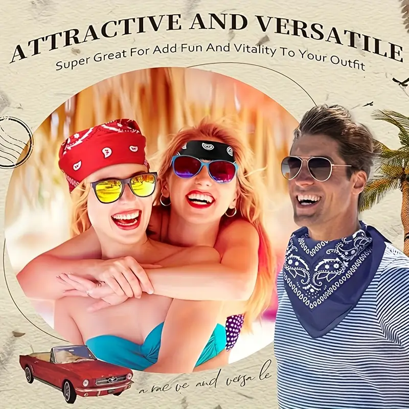 - Bandana de 55 x 55 cm El diseño neutro de la bandana es una prenda clásica de moda. Disponible en varios colores elegantes y clásicos. Puedes modificar la combinación de colores para adaptarla a tu atuendo.