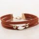 Diseño simple y clasico hecho con cintas de cuero con caracolas, regulables