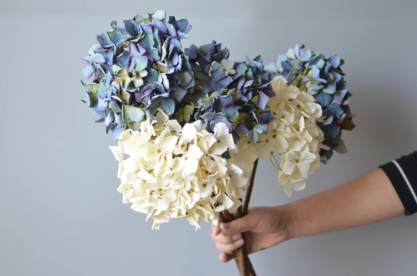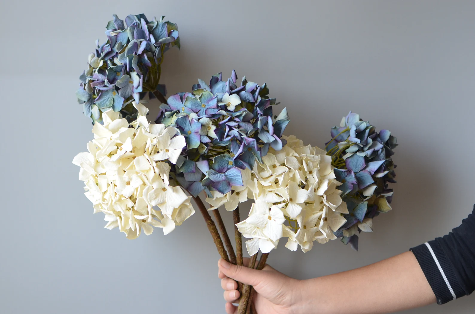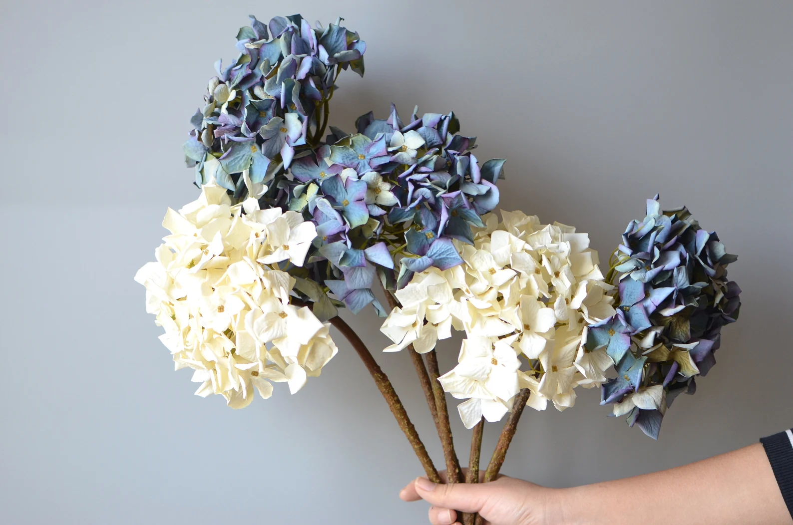 Hortensias de seda secas, hortensias artificiales, centros de mesa azul violeta, ramos de novia de seda