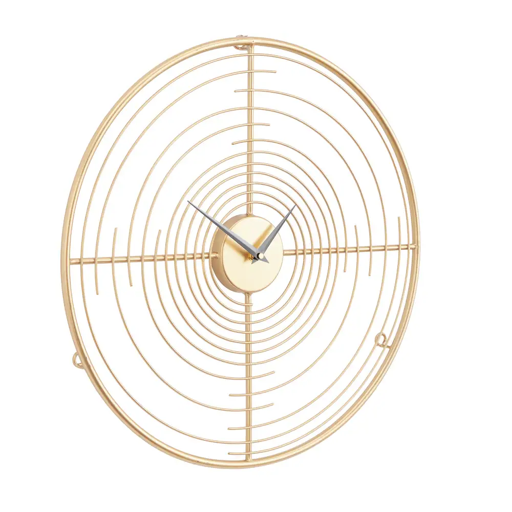 - Características del reloj de pared redondo: cuenta con un diseño circular con círculos interiores incompletos de metal fino