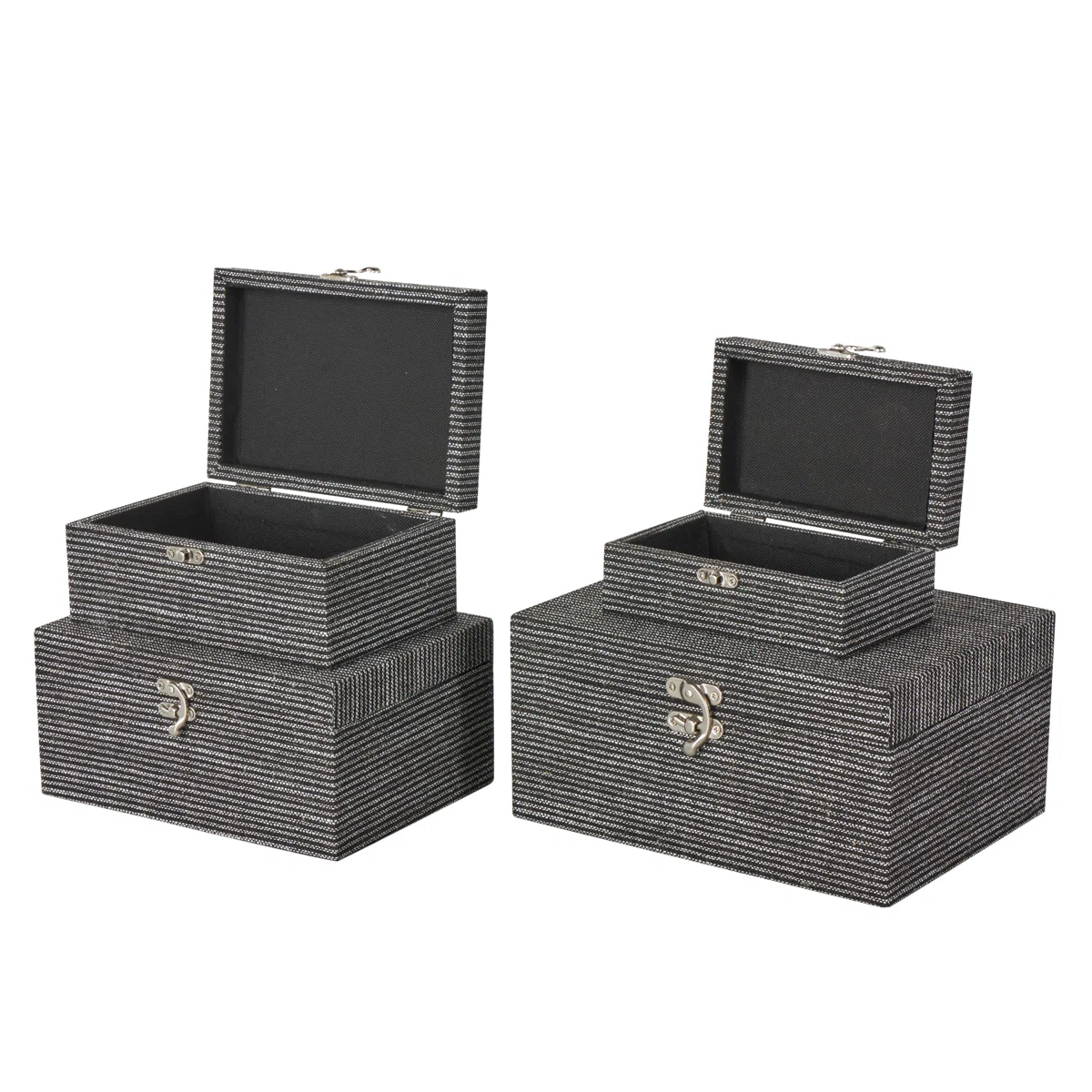 - Este juego de cajas decorativas negras está elaborado con lino de alta calidad y MDF para un diseño elegante y funcional.