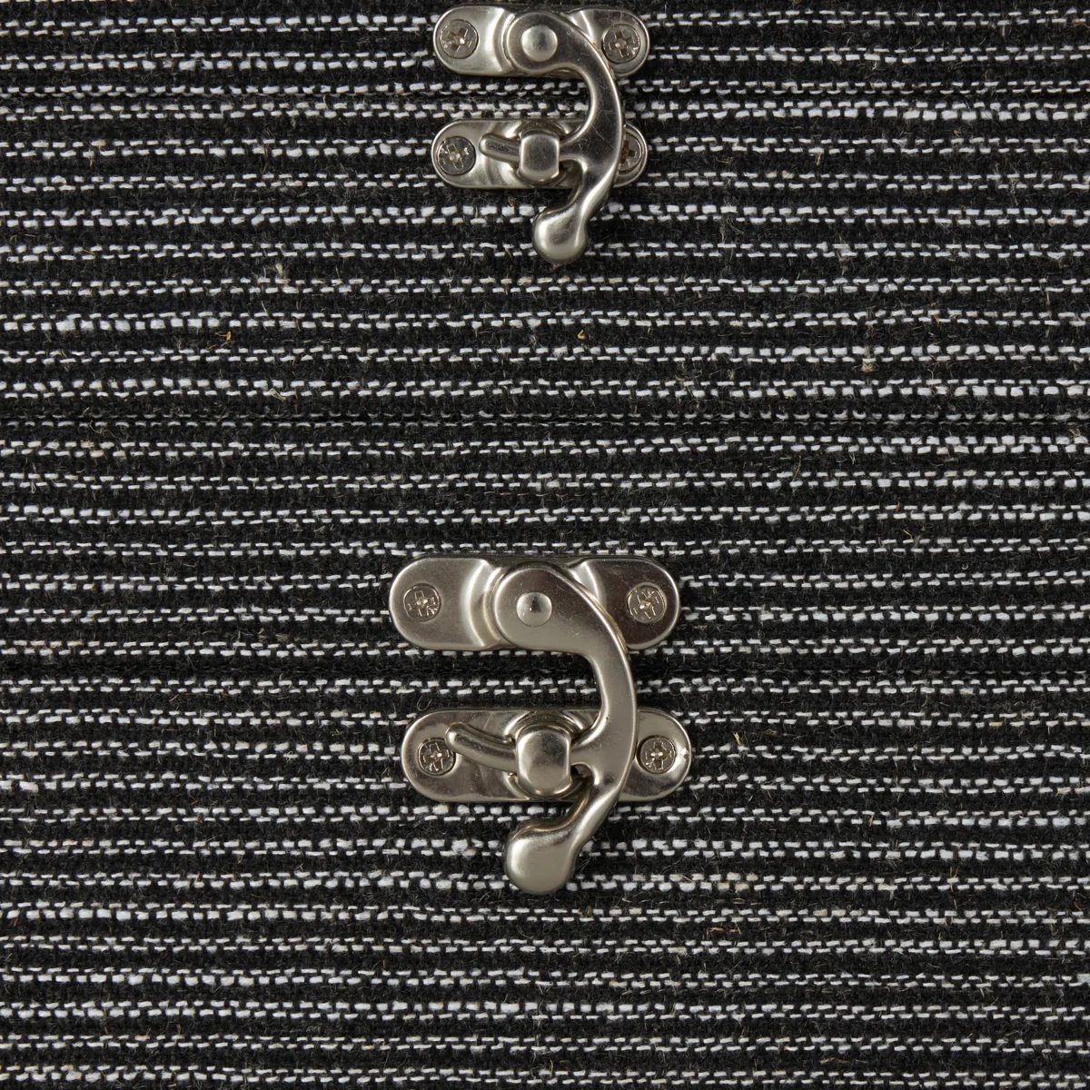 - Estas cajas negras texturizadas para guardar recuerdos presentan una forma rectangular atemporal con un patrón lineal que complementa cualquier decoración.